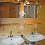 Badrumsfaciliteterna i villan Holzhaus Hirschalm inkluderar också en separat toalett och en dusch.